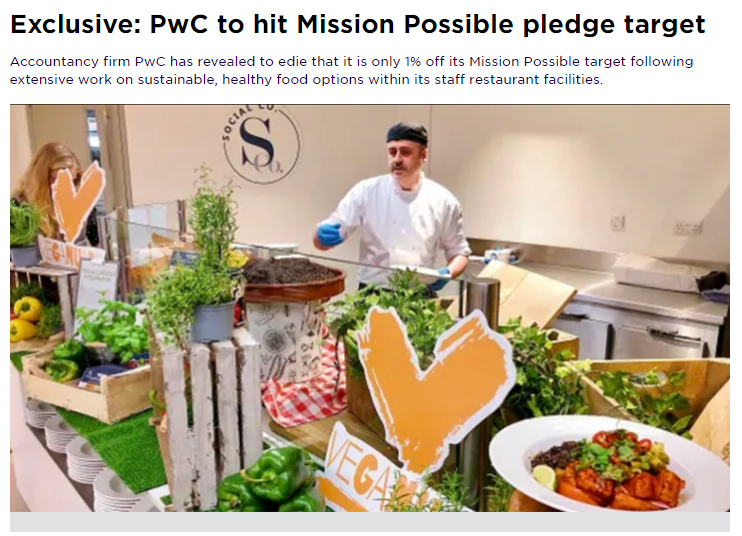 “We’ve committed to a target of 25% of all spend on food to be plant-based by 2020, versus a baseline of 15% in 2017, as part of our programme to encourage our people to adopt sustainable lifestyles. We’re on track to achieve that, with spend at end 2019 around 24%. It’s been easier than we thought. Many people want to eat a more plant-based diet, for a variety of reasons – health, environmental, or animal welfare. Offering more options for our people to do this in their work context has been extremely well received. Last year 550 PwC people took part in the formal Veganuary WorkPlace Challenge, whilst many more tried plant-based options as part of a flexitarian approach. It looks like this year will be even bigger.