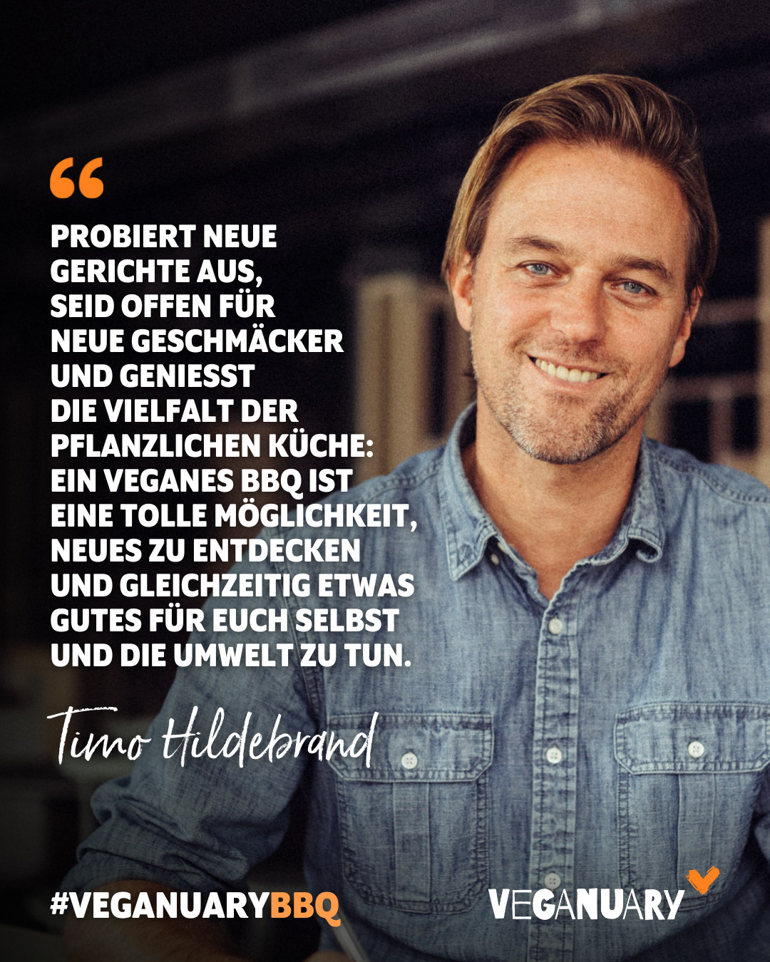 Berlin, 08. Juli 2024 – Fußball und Grillen scheinen untrennbar miteinander verbunden: Jede:r Zweite in Deutschland will während der Europameisterschaft den Grill anwerfen, stellte kürzlich eine YouGov-Studie fest.* Einer, der sich bestens mit Fußball und mit Kulinarik auskennt, ist Timo Hildebrand, Ex-Nationaltorhüter und Geschäftsführer des veganen Restaurants vhy! in Stuttgart. Gemeinsam mit der internationalen Organisation Veganuary lädt er anlässlich der heute startenden Kampagne #VeganuaryBBQ dazu ein, das Halbfinale mit Pflanzlichem auf dem Rost weiter zu genießen. Positive Nebeneffekte: Mitmachen tröstet durchaus über das Ausscheiden der deutschen Mannschaft hinweg – und die Wiederholung einer veganen Grillparty ist jederzeit möglich. Warum es sich außerdem lohnt, es mal vegan zu probieren, und welche Rolle Fußball dabei spielen kann, darüber spricht Timo Hildebrand im Interview:
