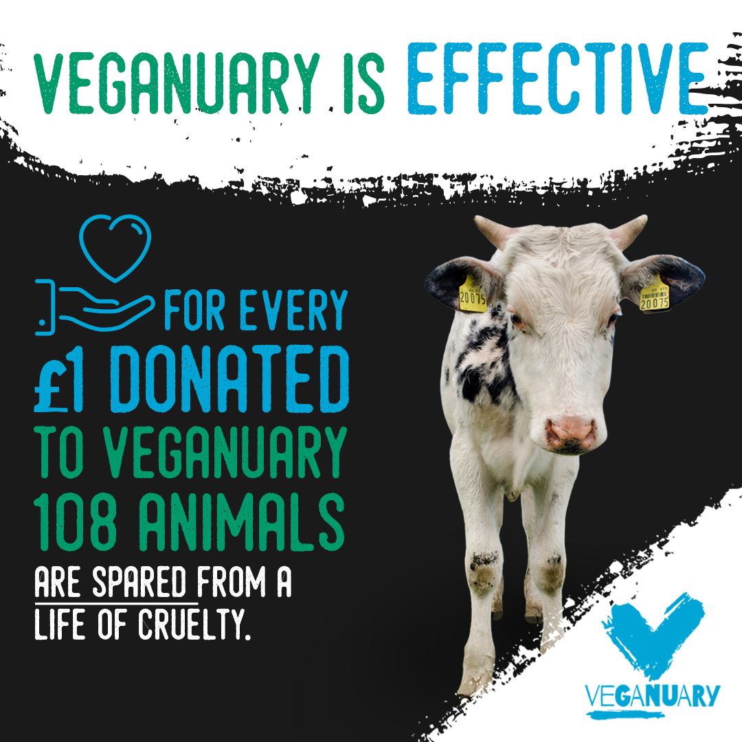 For every £ spent, 108 animals are spared from ever having to go through the suffering of animal agriculture.