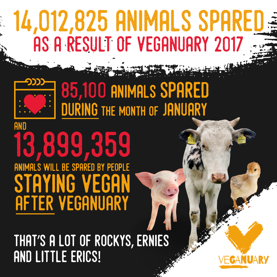 Therefore, potentially over 77 million animals could be spared as a result of the Veganuary 2017 campaign!