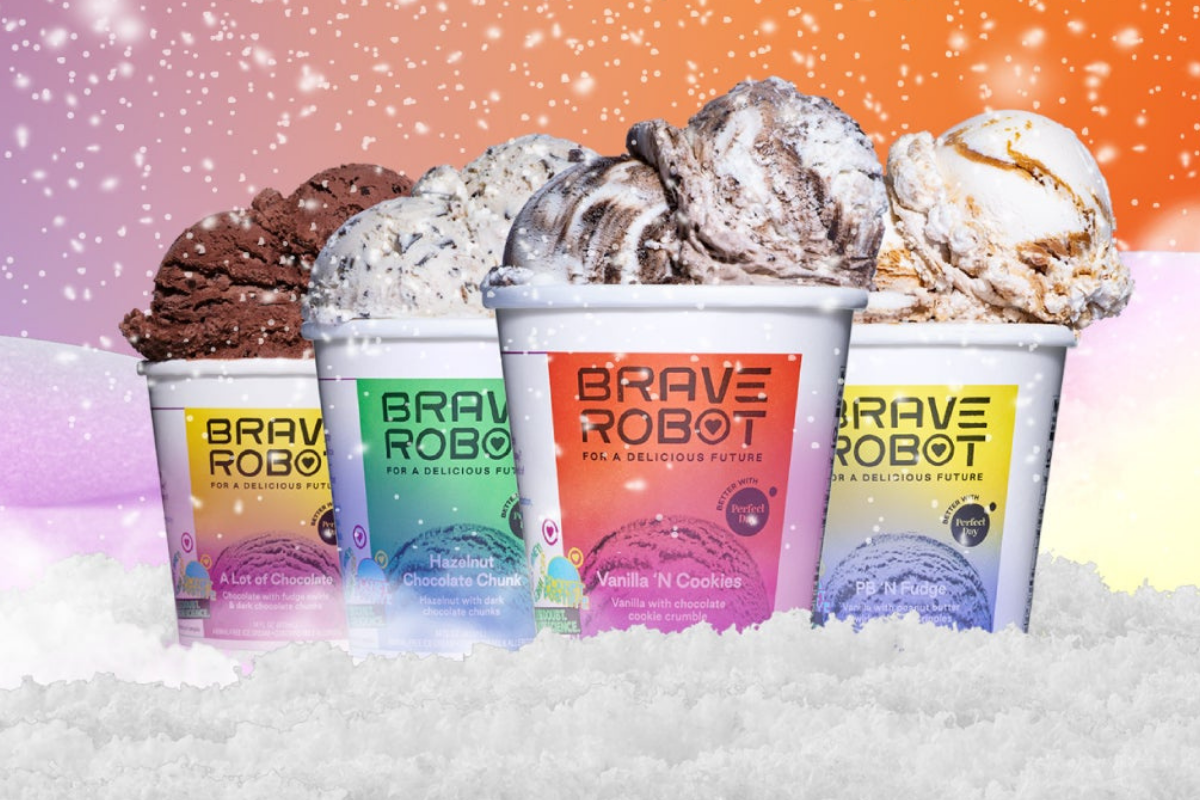Brave Robot’s ice cream is unique and exciting because while it is vegan, it is made with Perfect Day’s synthesized milk proteins. So, the process is animal- and cruelty-free and the finished product is also lactose-free with a low carbon footprint. But the whey protein is molecularly identical to cow’s milk!