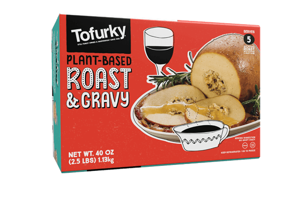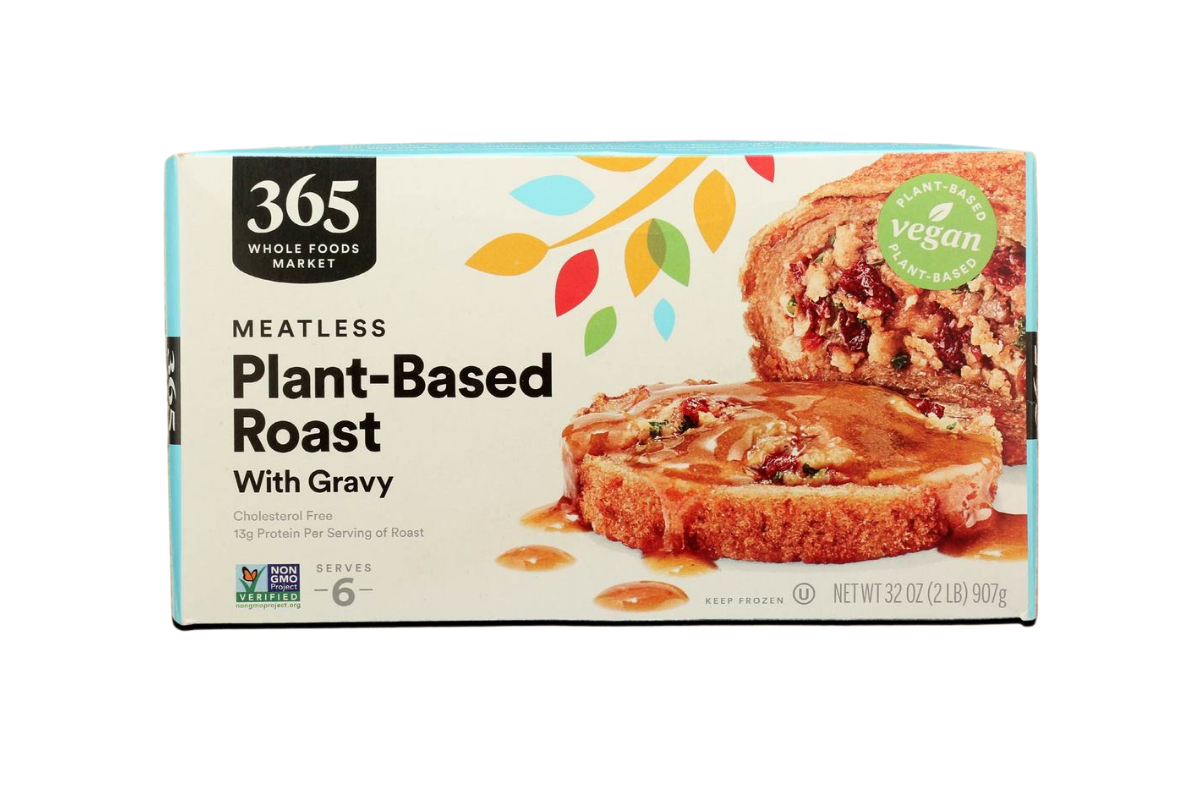 Whole Foods has also recently joined the party with its own vegan holiday roast! This one is also breaded and soy-based, and it is filled with a bread stuffing with onions, cranberries, and celery and can be served with a side of gravy.