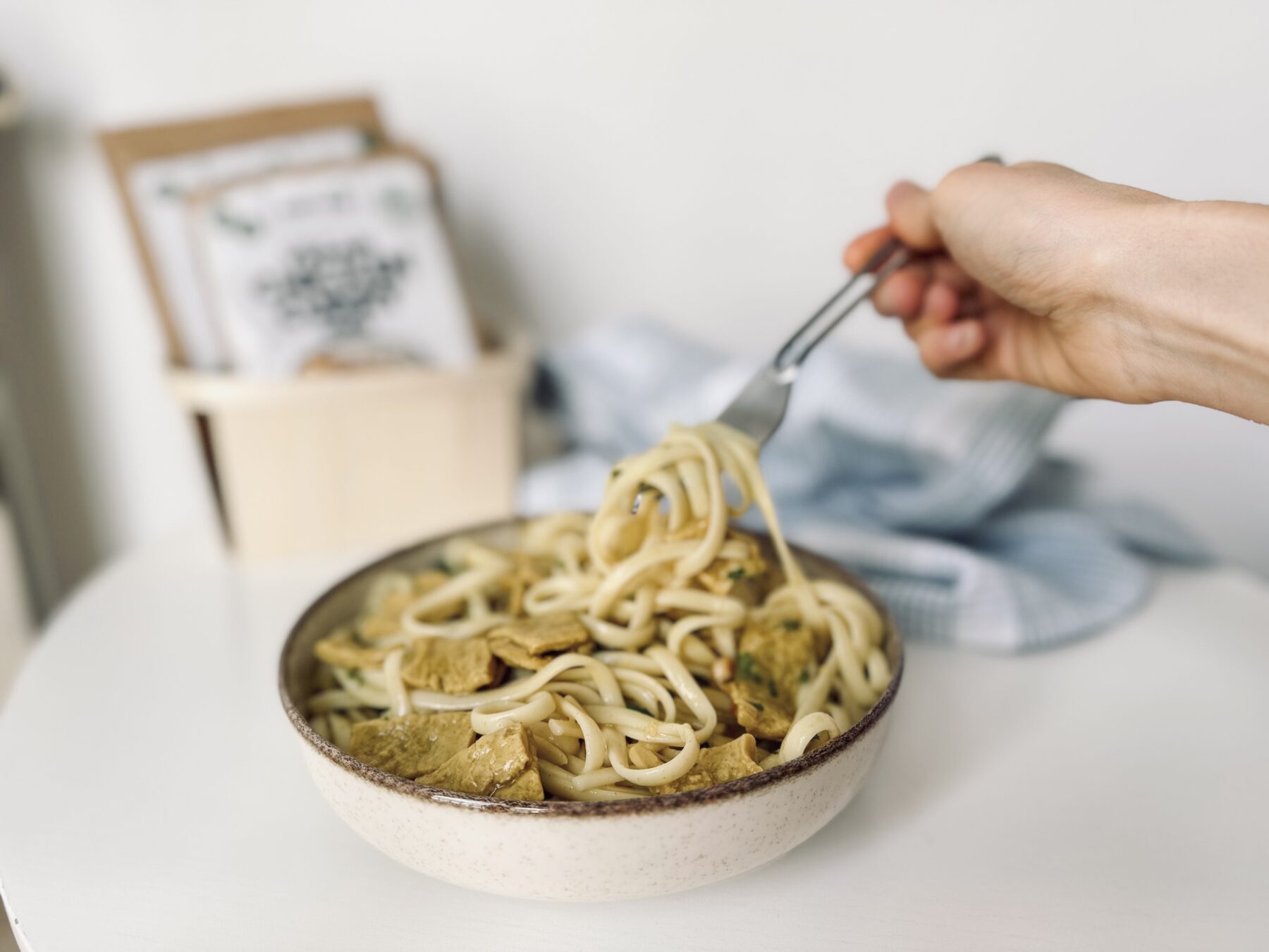 – Preparar el Pollo Vegano al Curry tal como indica el reverso del paquete.