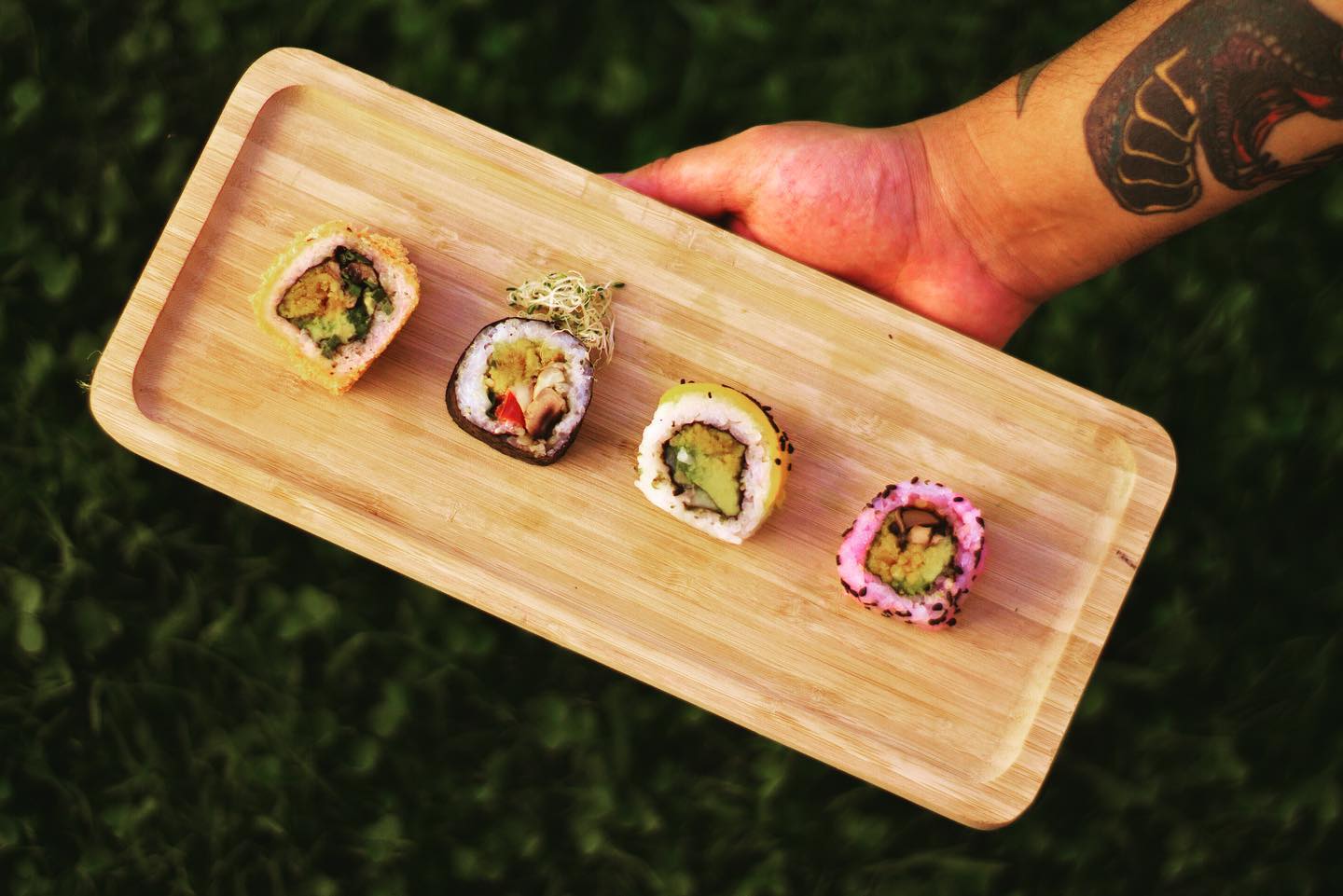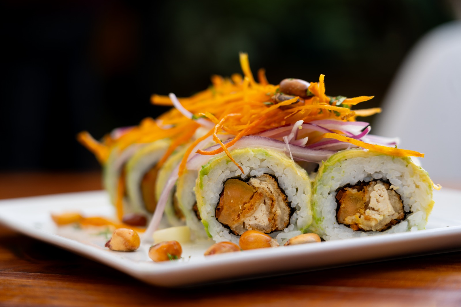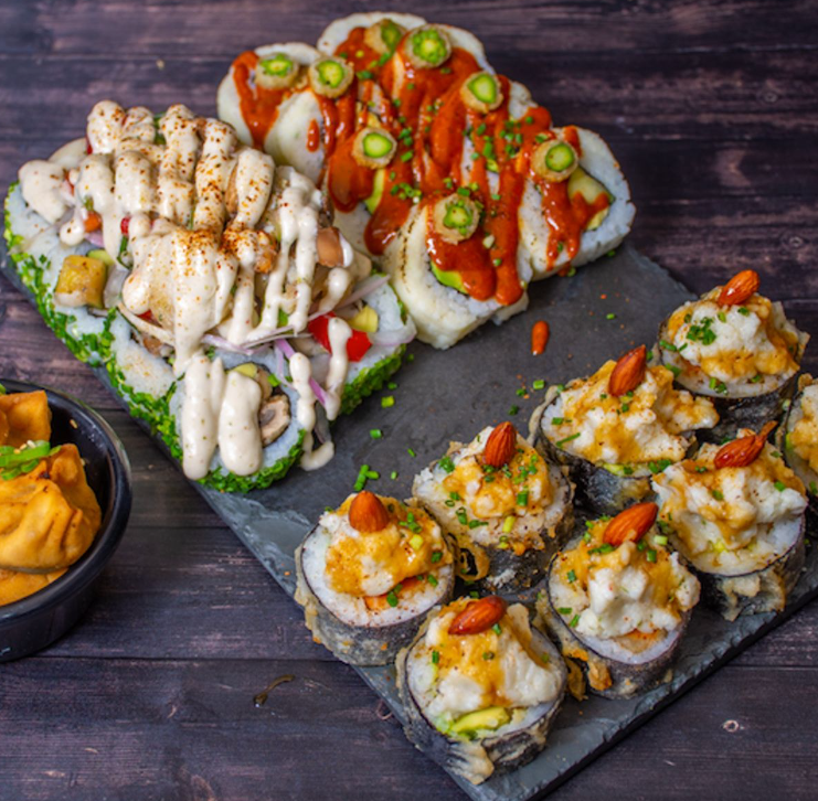 Kambo Sushi: Con locales en Providencia y Maipú, en Kambo Sushi comentan que “lo que más destaca de nuestras preparaciones es la creatividad y la innovación en el uso de ingredientes vegetales. Actualizamos nuestro menú anualmente, inspirándonos en las tendencias actuales y en las valiosas sugerencias de nuestros clientes. Utilizamos una amplia variedad de ingredientes, como tofu y seitán, que aportan texturas ricas y variadas. Además, nuestras salsas exóticas, elaboradas en casa, añaden un toque especial que hace que cada plato sea único. Cada ingrediente es seleccionado meticulosamente para asegurar que cada bocado sea una explosión de sabor, ofreciendo una experiencia culinaria inolvidable”. Dentro de sus preparaciones, destacan el California Almond envuelto en almendra con salsa unagui Kambo, que según comentan, se ha ganado el corazón de sus clientes.