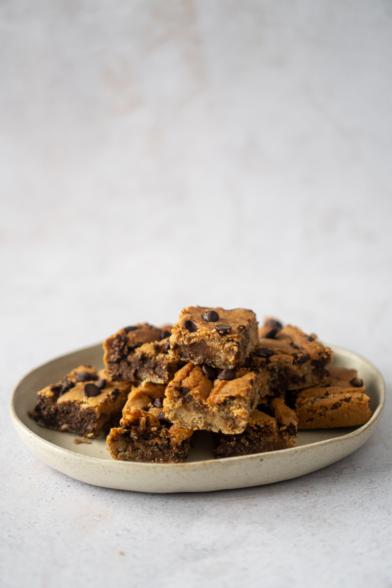 Un blondie es un postre dulce en barra, muy similar a un brownie. Esta versión vegana está hecha en base a garbanzos, convirtiéndose en una colación muy nutritiva para los más pequeños y pequeñas de la casa.