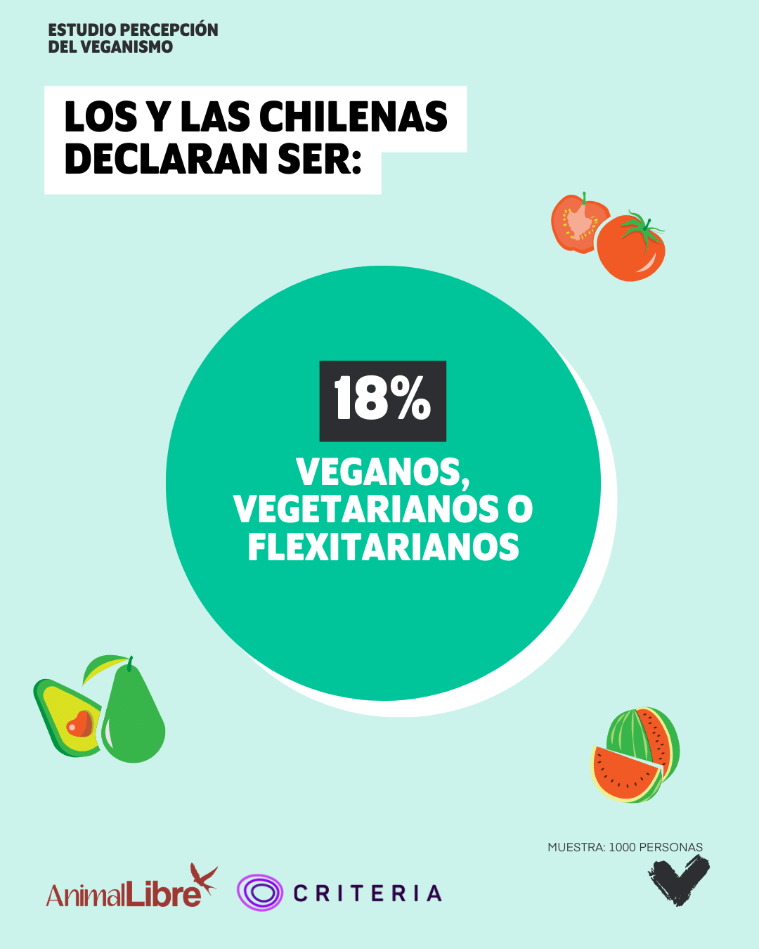 - La investigación realizada por Animal Libre y Criteria también da cuenta de una importante presencia de flexitarianos, vegetarianos y veganos, alcanzando un 18%.