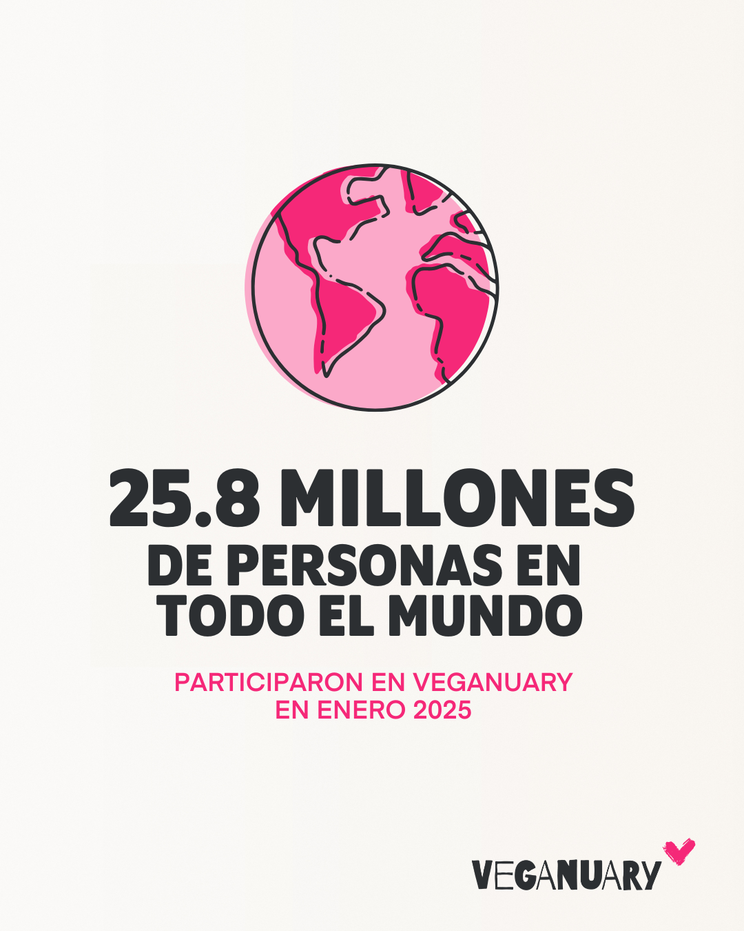 Veganuary, que en su campaña 2025 amplió su presencia global con nuevas campañas en Canadá, Perú y Malasia en colaboración con organizaciones asociadas en esos países, reveló que, en todo el mundo, alrededor de 25,8 millones de personas participaron en Veganuary en enero de 2025, según datos de YouGov y las estimaciones de población actuales de los países en que se realizaron las encuestas.