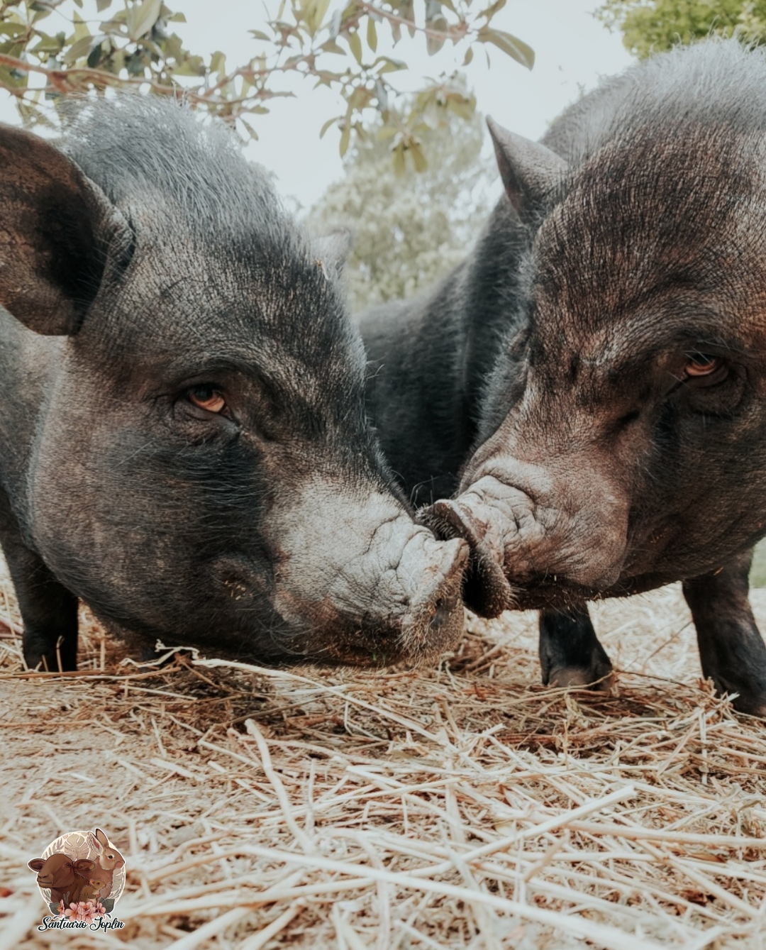 Como consecuencia de la popularidad de la compra– muchas veces irresponsable – de cerdos vietnamitas como mascota, Momo y Wilburg fueron abandonados en una zona agreste. Confundidos, y temerosos de los humanos, ambos cerditos conformaron una pequeña manada para cuidarse el uno con el otro, pero esto no evitaba que pudiesen ser víctimas de la caza. Es más, antes de que el equipo del Santuario Joplin tuviera conocimiento del caso, se organizaron varias batidas de caza para darle muerte a estos indefensos hermanos. Pero tras un lento y minucioso trabajo, donde los voluntarios de Joplin establecieron una conexión y una relación de confianza con Momo y Wilburg, ambos cerditos fuero rescatados y hoy viven felices y en libertad.