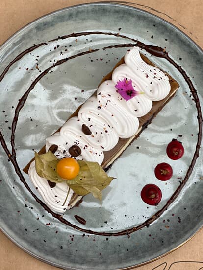 DatilVainilla: Datilvainilla es una pastelería y cafetería vegana ubicada en Pucón. Dentro de sus deliciosas alternativas, destacan la selva otoñal, que cambia según estación, “ya que en verano es de frutos rojos”, explican. Es una base de brownie sin gluten con un cremoso de café elaborado con crema de coco y café de grano, un ganache de chocolate blanco (a base de leche de coco), y crema vegetal. Los precios de la cafetería van desde los $1.500 a $15.000 (pizzas).