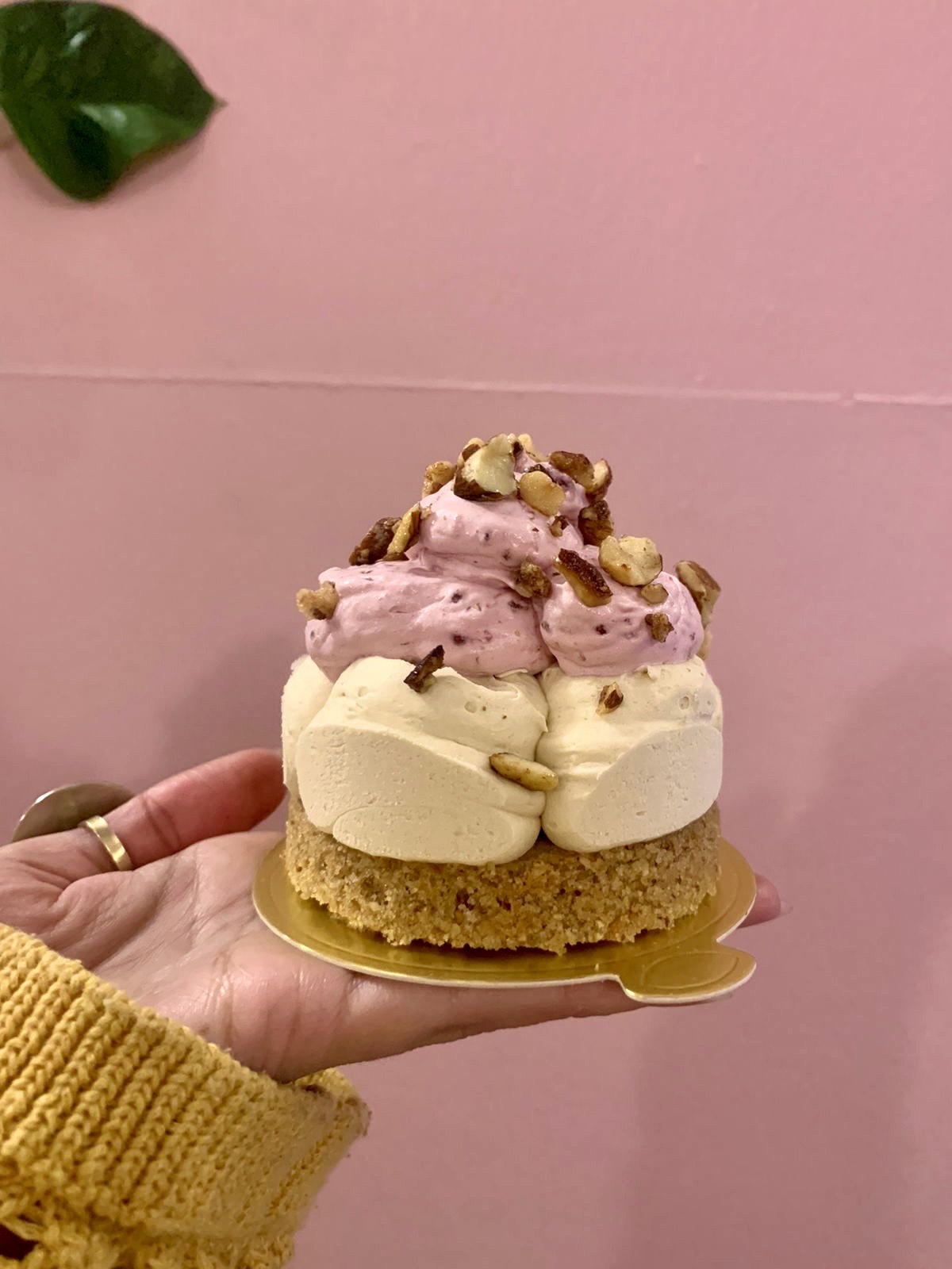 ¡Qué Pastel!: Tres años acaba de cumplir este emprendimiento de repostería vegana que deleita con sus tortas, galletas, empolvados, mantecados y mucho más. Destaca su torta helada de merengue frambuesa. Es una torta helada con 3 capas dobles de merengue de aquafaba, relleno con crema batida saborizada con frambuesas naturales y, además, con frambuesas enteras. Los valores van desde $3.000 las porciones de galletas, hasta $48.000 las tortas para 25 personas.