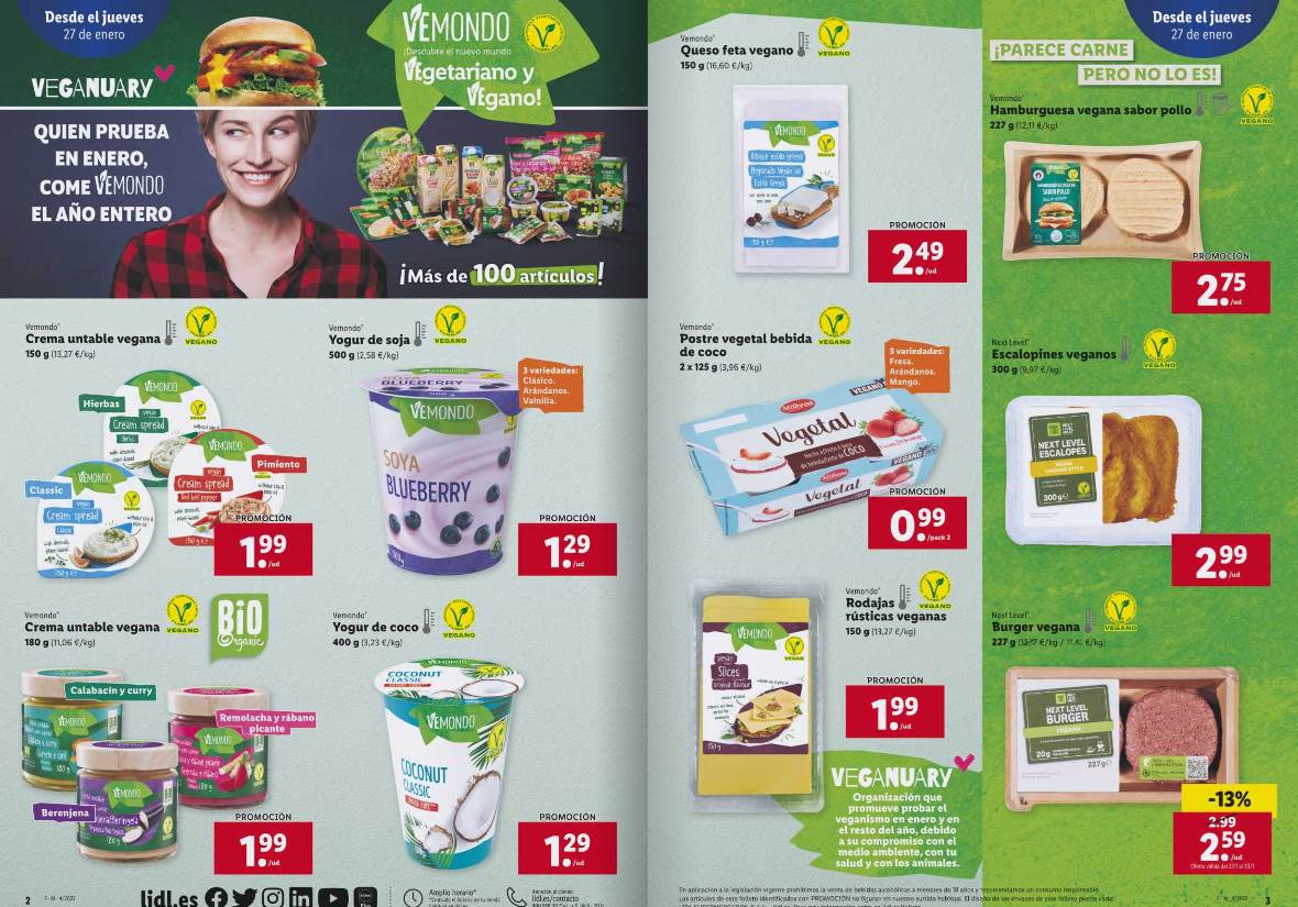 Recientemente Lidl añadió 40 nuevos productos a su catálogo bajo su marca propia Vemondo. Y como parte de su alianza con Veganuary, Lidl realizó, durante el pasado enero, una potente campaña de publicidad para promocionar el consumo de estos productos y animar a las personas a aceptar el reto de Veganuary.