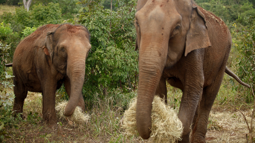 Os animais no topo da colina precisam receber o café da manhã e os medicamentos (se necessário), antes de podermos descer para verificar onde estão as cinco meninas elefantes. Da casa, você pode verificar as duas câmeras para ver se algum elefante está aguardando o café da manhã no galpão. Você geralmente encontrará Bambi e Mara perto da lagoa e saberá que Rana está em algum lugar por perto.