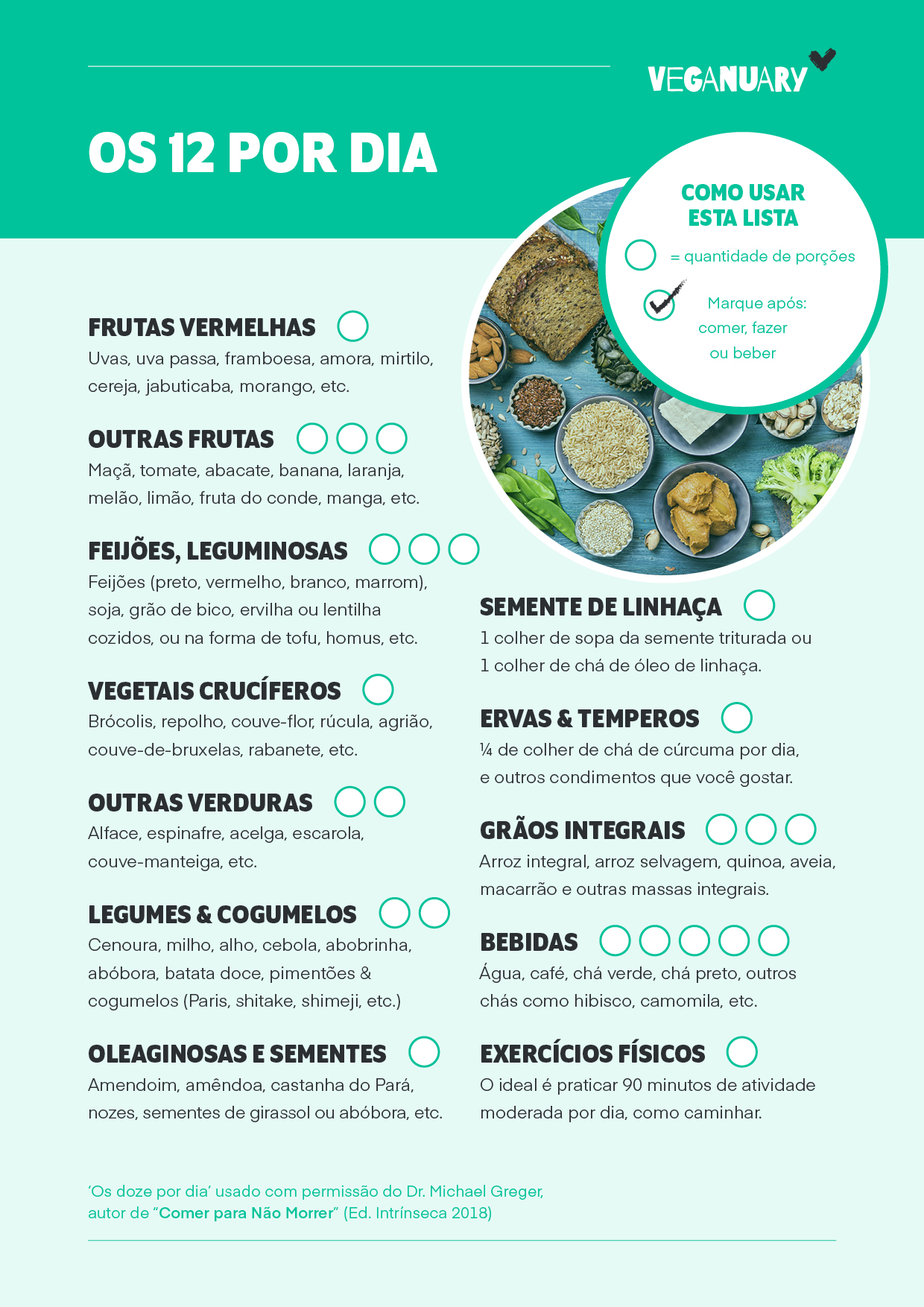 Baixe aqui a lista “Os Doze Por Dia” e planeje sua alimentação vegana semanalmente.