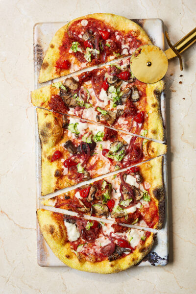 - Classic Vegan Margherita – Tomato base with MozzaRisella and oregano