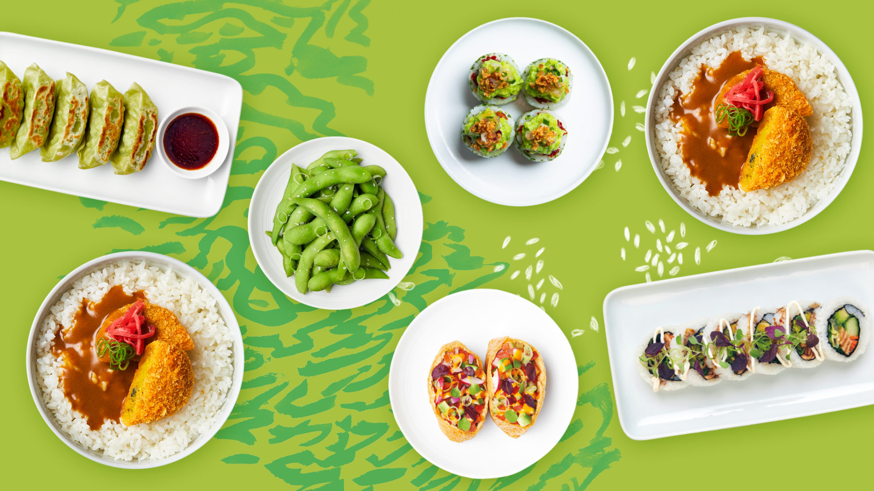 - Inari Taco – Golden tofu pockets filled with rice, avocado, ponzu salsa & vegan sriracha mayo