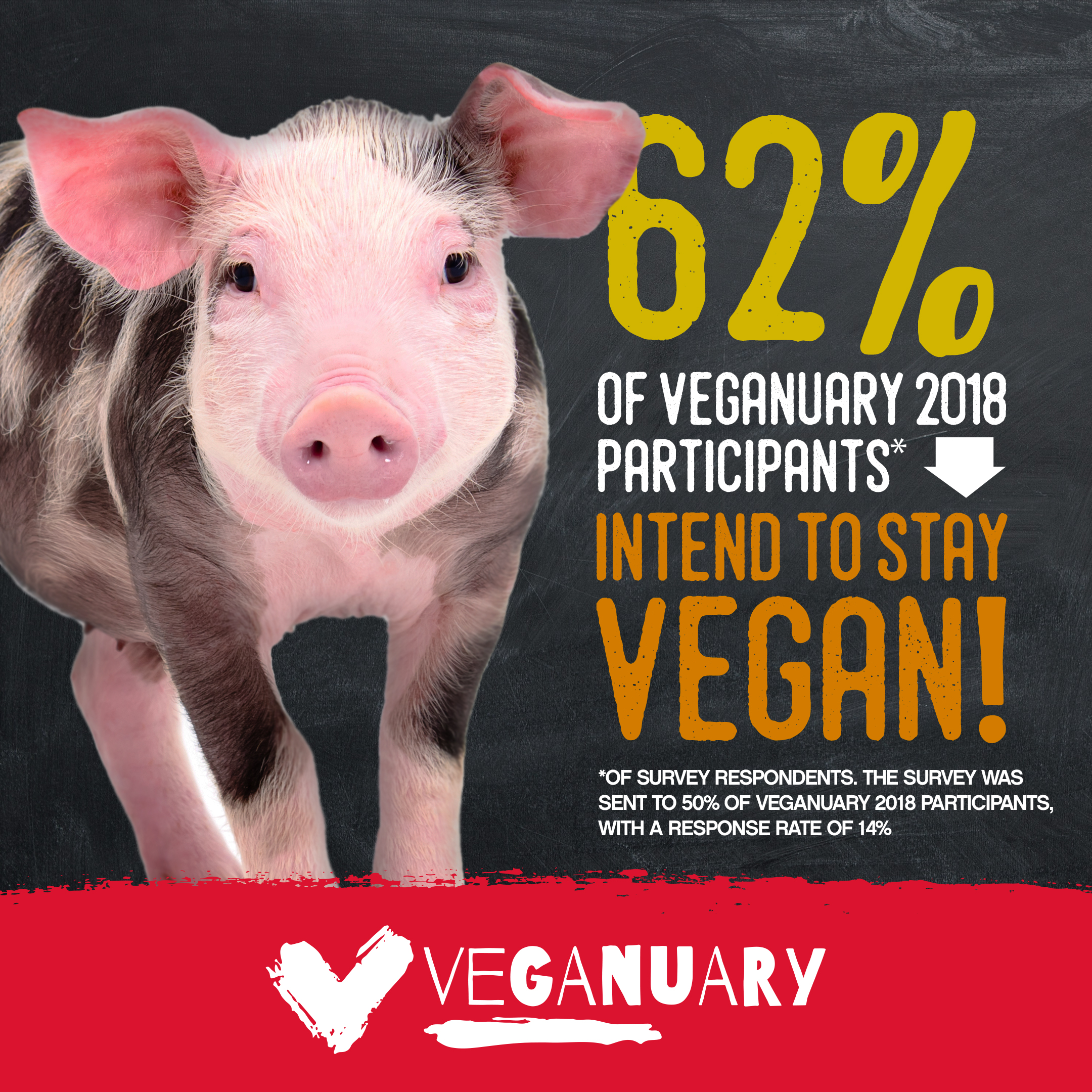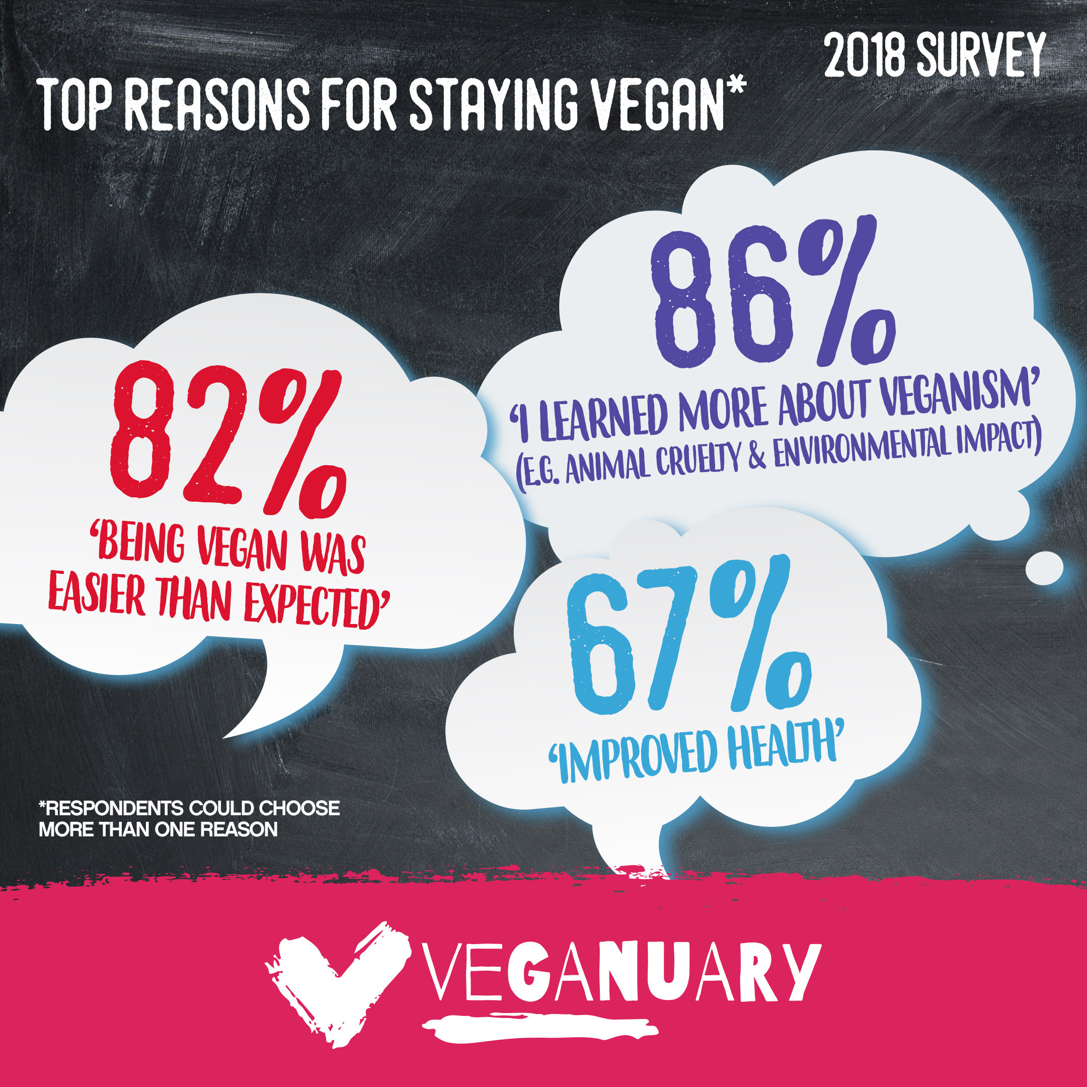 - 62% of (previously non-vegan) respondents said they intended to remain vegan afterwards. This is because: